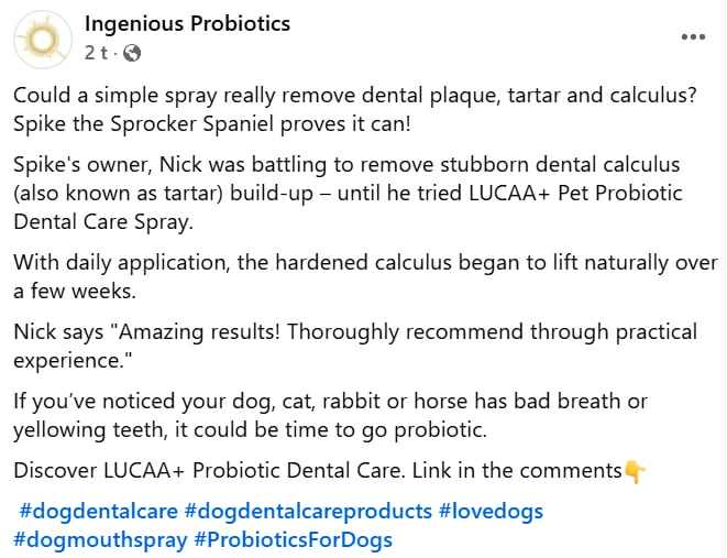 Case study chihuahua: https://ingenious-probiotics-vet.com/cdn/shop/files/Provilan_Dental_Care_Case_Study_-_Dexter_s_Teeth_a3e3e735-0f09-4ff7-b1f4-20e8af9ebf6e.pdf?v=10892166510443797006